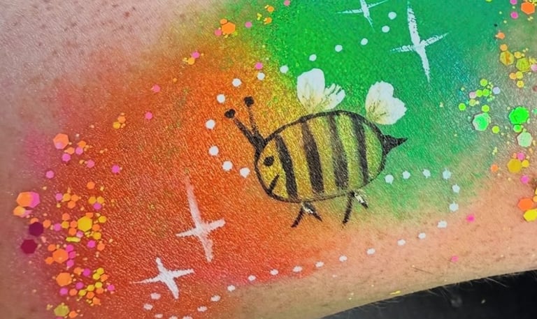 Firmenevents & öffentliche Anlässe mit Bunte Kunst-Kinderschminken & Glitzertattoos